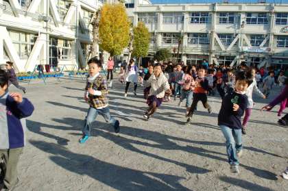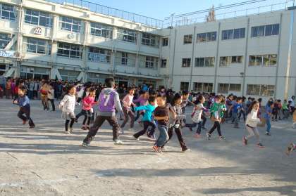 29日は、集会委員会が島鬼を計画してくれました。学年ごとに、鬼に捕まらないようにして、島をたどってゴールを目指す単純な鬼ごっこですが、1学年150人くらいはいる山野小学校でこれをやると、迫力満点!