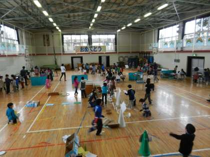 昨日、生活科「おもちゃの広場」の学習を1年生と一緒に体育館で行いました。2年生はこの日のために、自分たちでおもちゃを一から作り、試行錯誤を重ねながら完成させることができました。また、1年生を招待するということで、どうしたら楽しんでもらえるか、子どもたちなりにルールを考えたり、景品を作ったりと工夫していました。1年生からは「2年生はこんなに苦労して作ったんだ」「初めて遊ばせてくれて嬉しかった」といった嬉しい感想が出ていました。1年生に喜んでもらい、2年生のやる気がますます高まっています。