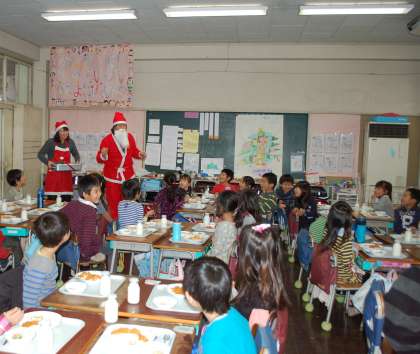 今日は、2学期最後の給食です。自分でこの2学期の給食を振り返ってみてください。給食の準備や片付けを丁寧にしましたか。給食当番は責任をもって行うことができましたか。2学期できていたこと、また、できるようになったことは、そのまま続けていきましょう。そして、2学期できなかったことは、3学期できるように努力しましょう。