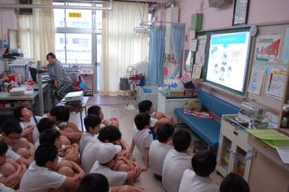 今日から6年生から順番に計測が始まりました。3学期の計測は、一年間のまとめです。この一年で、自分がどのように成長してきたかを改めて確認し、健康について考えるときです。保健室では、毎回必ず計測の前に健康に関することを話してくれます。今日の6年生には、心の健康についてでした。自分のことに置き換えて、じっくり聞いているようでした。