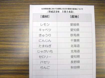 メモは、ポトフについてです。ポトフは、「火にかけた鍋」という意味でフランスの家庭で作られる煮込み料理です。温かく、素材をいかしたやさしい味は、今日のように寒い日には、ぴったりです。しかし、ポトフの良いところは、それだけではありません。ポトフに入っている具を見てください。ビタミンや食物繊維で私たちの体調を整えるセロリーや人参、パセリに加え、私たちの体を作るタンパク質を多く含んだウィンナー、さらに、私たちのエネルギーとなる糖質たっぷりのじゃがいもを入れているという養バランスが考えられた料理なのです。ぜひ、残さず食べて、元気にすごしましょう。