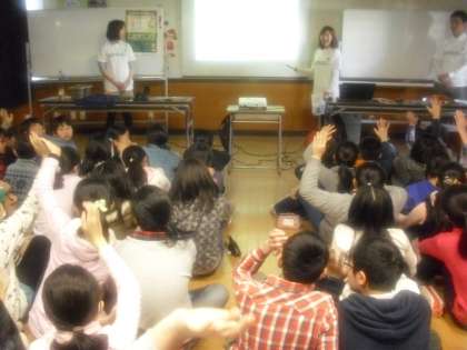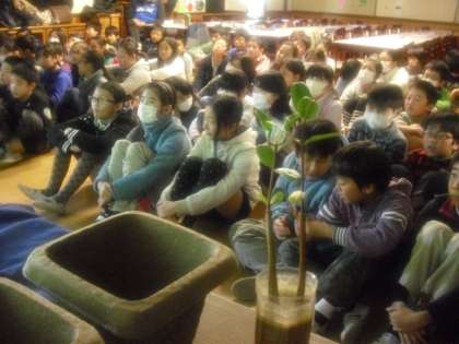 6年生では、東京海上日動の方々をお招きして、緑の授業を行いました。マングローブとは何か、マングローブの役割、環境を守るためにできること、の三つについて学習しました。社員が使っていた制服は土にかえる植木鉢にしてゴミにならない工夫をしているそうです。これにはみんな、目を丸くしました。