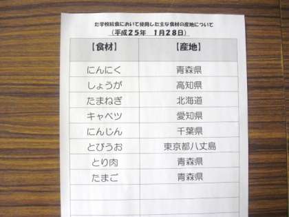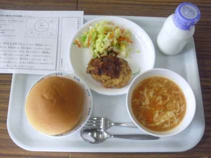 今日は、学校給食週間3日目ということで“地産地消”をテーマにした献立です。地産地消とは、地元でとれた(つくられた)ものを地元で食べるということです。今日は、私たちが住んでいる東京都にある八丈島という島でとれた“トビウオ”を使い、メンチカツにしました。ひき肉を使ったメンチカツより脂が少なくヘルシーです。また、トビウオは、かつおと同じようにダシをとる材料として使われることもあるほど味のある魚です。よく噛んで味わって食べてください。