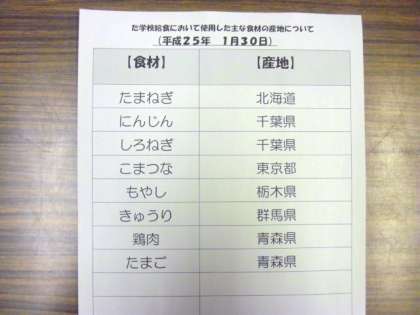 今日は、学校給食週間最後の日ということで、新しい献立と地産地消をテーマに“あっさりうどん”と“八丈蒸しパン”を取り入れています。あっさりうどんは、鰹節を使わず、昆布と鶏肉でダシをとっているのが特徴です。あっさりとした中にも鶏肉のうまみとコクを出すようにしています。八丈蒸しパンは、その名の通り、八丈島でとれた明日葉粉を使った蒸しパンです。鮮やかな緑色と明日葉ならではの香りが特徴です。よく噛んで食べましょう。