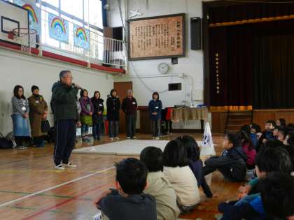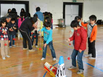 2月6日(木)、地域の方々による昔から伝わる遊びを教わる会がありました。この会では、地域の方々、PTAの方々にご協力いただきました。その数なんと総勢22名。2年生の子どもたち一人一人に、遊び方や上手になるためのコツを丁寧に教えてくさいました。