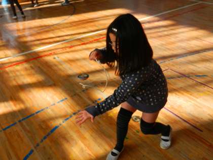今回、教えていただいた遊びは全部で8つ。あやとり、あぶくたったにえたった・はないちもんめ、こま、メンコ、おはじき、けん玉、ゴムだん・ゴムとびです。会が始まると、みんな目をキラキラさせて遊びを教わっていました。どのコーナーでも、地域の方の周りに集まって真剣に話を聞く姿が印象的でした。ここで教わったことを、今月の20日に1年生に教えます。