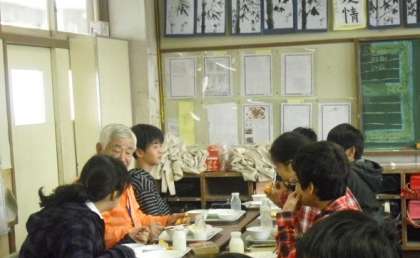 ※今日は、いつも登下校中の安全を見守ってくださっている砧町自治会のみんさんと6年生がふれあい給食を行いました。