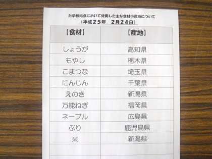 メモは、照り焼きに使われている鰤(ぶり)についてです。鰤は、冬が旬の魚です。そして、同じ魚でも大きさによって名前が変わる出世魚で、70センチメートル以下のものは、その大きさに合わせて、“イナダ”、“ワラサ”、“メジロ”などと呼ばれ、70センチメートル以上のものだけが“ぶり”と呼ばれます。このぶりの栄養は、意外にもその脂にたくさん含まれます。EPAやDHAと呼ばれ、血液をサラサラにし、病気を防ぐ働きや脳の動きを活発にする働きがあります。ぜひ、残さず食べましょう。