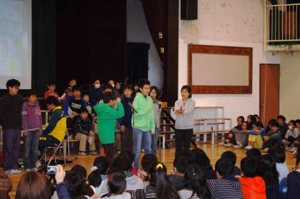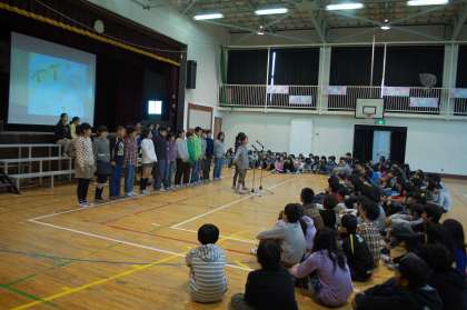 1年間英語活動でやってきたことをもとに、山野小学校の様々な行事についてクラスごとのグループで英語で発表しました。英語の先生の素晴らしいテンションが子どもたちに乗り移って、見ていて楽しい発表会になりました。お客で来ていた5年生たちも、ジェスチャーがついていたので英語がわからなくても何となくわかったと言っていました。英語もこういう風にやると、とっても楽しいですね!