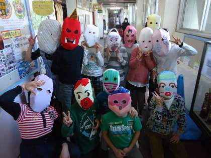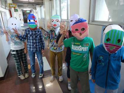 4年生の子どもたちが、図工の時間に作ったお面をわざわざ校長室まで見せに来てくれました。どれも、個性的で、色合いがすてきなものばかり。しかも、しっかりとかぶれます。こういう作品を指導してくれるので、子どもたちはみんな図工が大好き!