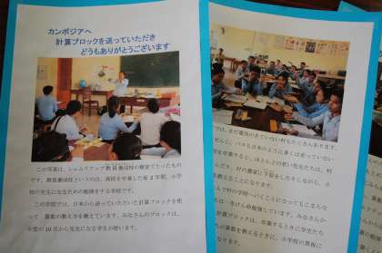 山野小では、JICAの方からの要請で、家で使わなくなった算数ブロックを集めてカンボジアの子どもたちに送っています。その方から、お礼のお手紙をいただきました。とっても役に立っているようです。うれしいですね。