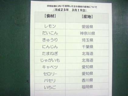 みなさん、今年度の給食も残り2回となりました。自分自身でこの1年間を振り返って見ましょう。給食前の準備(周りのごみ拾い、机拭き、手洗い)、給食当番、時間に合わせた行動、好き嫌い、食事のマナー、片付けなど、給食時間にもたくさん学ぶことがありますね。今年度できたことは、ぜひ、4月からも続けましょう。そして、今年度できなかったことは、きちんと反省し、できるように努力していきましょう。