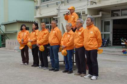 対面式後、いつも月曜日の登校時と水曜日の下校時を見守ってくださっている、法人格砧町自治会の皆さんを紹介しました。オレンジのユニフォームも一新して、今年度も子どもたちを見守ってくれます。どうぞ、よろしくお願いします。