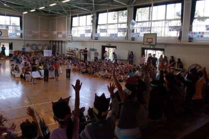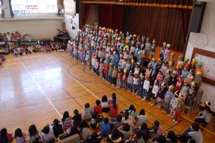 今日は朝会の時間から、1年生を迎える会でした。六年生が作ってくれた冠をかぶり、手をひかれて1年生入場。ニッコニコの1年生!代表委員会の5,6年生が企画運営してくれています。学校3択クイズもなかなか。1年生の歌もかわいい!そして、最後の全員での校歌。体育館が揺れているかのようでした。とっても素敵な会でした。