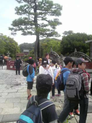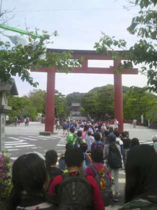 順調に鎌倉に到着しました。ここからグループ行動です。第1チェックポイントでは、これからの歩きに備えて、ストレッチをしました。
