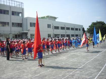 澄み渡る青空の下、スポーツフェスタが始まりました。各色とも一生懸命さが伝わってきます。