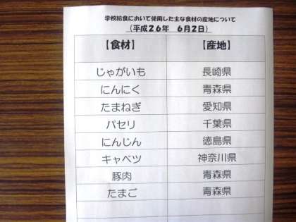 みなさん、今日から6月です。6月の給食のマナー目標は、“手洗いや清潔に気をつけよう”、栄養目標は、“歯や骨を丈夫にする食事について知ろう”です。今日は、手でつかんで食べるジャムバターサンドがありますが、みなさんきちんと手を洗いましたか。石鹸をつけず、水だけでさっと洗ったり、手をしっかり洗ったのにハンカチで拭かず、服やズボンなどで拭いたりしては、手洗いの意味がありません。また、手を洗って拭いたのに人や余分なものに触ったら、これもまた、手を洗った意味がありません。今の3つに心当たりがある人は、もう一度手を洗ってから食べましょう。