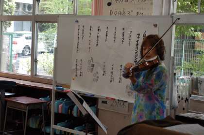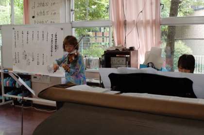 ヴァイオリニストの原ゆかり先生をお招きし、第2音楽室でヴァイオリンコンサートをしていただきました。原先生の奏でるすてきなメロディーに会場にいる全員が心をうばわれました。