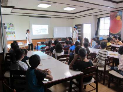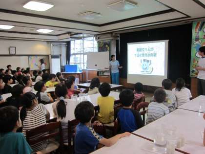 6月6日金曜日に水道キャラバン、10日に下水道キャラバンの方をお招きして、水道についての出前授業をしていただきました。蛇口をひねると出てくる水はどこから流れてくるのか、どのように処理されていくのかを映像や実験をしながら学習しました。水が安全においしく届けられているのは、様々な人の努力によるものだということを知ることができました。