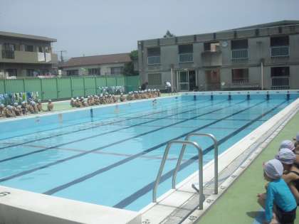 天候に恵まれ、プール開きを行いました。「黒2級をめざしたい。」「ルールを守ってプールに入り、級を上げたい。」など、代表児童の言葉には、意気込みを感じました。言葉通り、よくルールを守って楽しく水慣れをすることができました。
