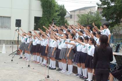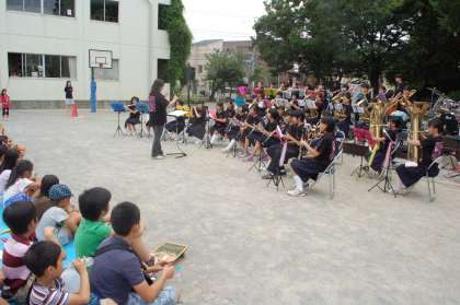 まずは砧中学校吹奏楽部の演奏。小学生たちがあこがれのまなざしで見ています!
