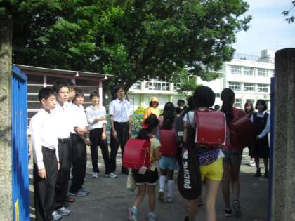 今日は、砧中学校の1〜3年生山野出身者が、後輩たちのためにあいさつに来てくれました。朝早くから門に立って挨拶をしてくれて、終わったら暑い中大急ぎで砧中に向かっていました。全校朝会で子どもたちに声をかけてくれる姿の頼もしいこと!あこがれの中学生です。