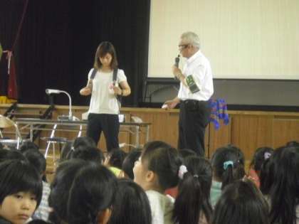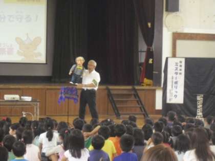 「いかのおすし」という合言葉を教えていただき、不審者が来たときにはどうすれば良いのか、危険な場所はどんなところなのかなど、人形を使ったり、クイズをしたり分かりやすく教えていただきました。
