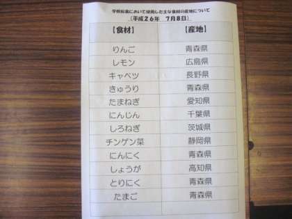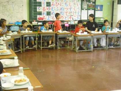 最近、給食の時間になっても、廊下や教室でふざけていてなかなか給食の支度をしない人が見受けられます。4時間目が終わった後は、休み時間ではなく給食の時間です。給食は45分間という短い時間で準備から片付けまでを終わらせなければなりません。この短い時間の中でも、食事の時間を充分にとるためには、クラス全員で協力して、素早く準備をすることが大切です。みなさんひとりひとりに、クラス全員の食事の時間がかかっています。ぜひ、クラスで協力して給食の準備を行いましょう。