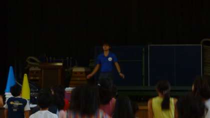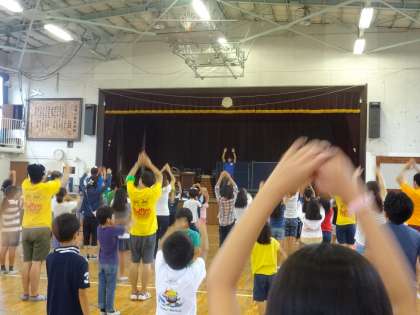 ご飯の後はみんなでラジオ体操!しっかりと体を動かすことで、よりすがすがしさを感じることができました。今年も前薗先生がラジオ体操を行いました。