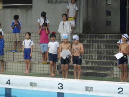 本日1、2時間目に4年生はプール納めを行いました。児童代表の言葉では、今年の目標に向かって、練習を重ね、達成できた喜びを堂々と話すことができました。改築の関係で、このプールで水泳の学習ができるのはあと1年、今年もたくさんお世話になり、来年もよろしくの気持ちを込めプールにお礼を言い、今年のプールは終わりました。