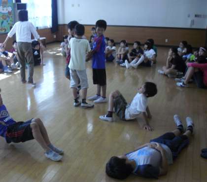 世田谷パブリックシアターの方に来ていただき、各クラス2時間ずつ『動き作り』を教わりました。