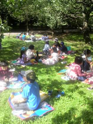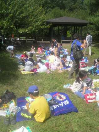 待ちに待ったお弁当です。青空の下、とても気持ちがいいです。
