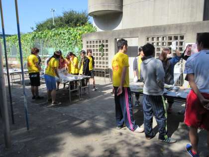 本日午前10時から山野おやじネット主催の「釣り堀『やまの』」が開催されます!プールにニジマスなどの魚を放流し、子どもたちが釣り上げ、その場で焼いて食べます。準備には朝8時前から、子どもたちが楽しめるように様々な工夫を大勢の方々がしてくださっています。天気も気持ちのいい秋晴れ、どんな大物を釣り上げるか楽しみです。