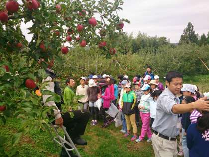 宮田さんのお話を聞いて、これからりんご狩りです。