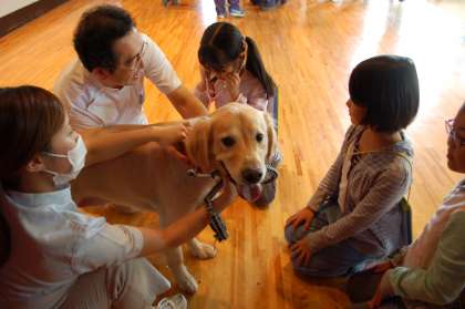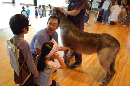 2年3組と4組が、ふれあい動物教室に参加しました。ゲストティーチャーとして、4人もの獣医さんが見えて、動物についてたくさんのことを教えて下さいました。2年生の子よりも完全に大きいのではないかという犬たちに圧倒されながらも、近くで触ったり心音を聞いたりして、いろいろな発見をしました。学校で飼っているうさぎたちにもふれあい、あらためて色々なことに気が付いていました。子どもたちがら「かわいい!」の声があちこちで聞かれる、和やかな1時間でした。