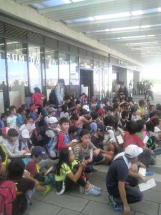 スカイツリーにやって来ました。世田谷区と違って風が大変強いです。残念ながら展望台には上れませんが、雨プログラムのすみだ水族館を見学します。