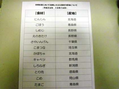 メモは、ごはんに使われているきのこについてです。きのこには、色々な種類がありますが、今日使っているのは、しめじとえのき茸です。笠が黒い方がしめじ、白い方がえのき茸です。きのこは、今が旬の食べ物で、栗やさんまと同じく“秋の味覚”といわれます。しめじに関しては、味は、あの高級きのこ“まつたけ”を越え、“きのこの中では一番おいしい」という意味で“香り松茸、味しめじ”といわれるほどです。ぜひ、秋の味覚、きのこごはんを味わってください。