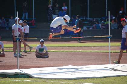 連合運動会の個人種目は、100m走、50mハードル走、走り幅跳び、走り高跳びの4つで、児童はそのうちの1種目を選択しました。