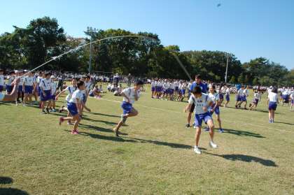 連合運動会は、個人種目のほかに選抜の400mリレーと5分間の長なわ跳びがあります。