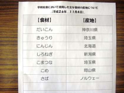 メモは、11月の給食栄養目標「食べ物の働きを知ろう(ビタミンC、カロテン)」についてです。このビタミンCやカロテンは、主に体の調子を整えてくれる栄養です。中でも、体に入ってきた病気の菌やウイルスから体を守り、、病気にかかりにくくしてくれる働きが強いので、みなさんにたっぷり摂ってもらいたい栄養です。これらは、野菜や果物に多く入っているので、今日の献立では、サラダや汁物に多いといえます。残さず食べましょう。