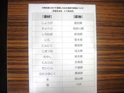 メモは、ジャンボ餃子についてです。今日は、みなさんお待ちかねのジャンボ餃子です。ジャンボ餃子には、体を温め、スタミナをつけてくれるにんにくやにら、しょうがなどがたっぷり使われているので、風邪をひきやすい今の時期にぴったりです。よく噛んで食べましょう。そして、今は、フェスタの練習で疲れもたまり、体調を崩しやすい時期です。ジャンボ餃子だけでなく、ごはん、野菜、汁ものなど、給食をバランスよく食べて体調を整えましょう。