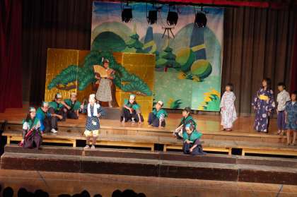 劇で使用した金屏風は、代々使いつながれていいるものです。