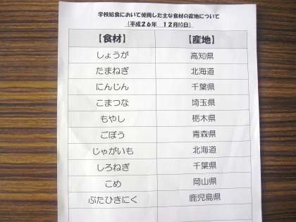 メモは、厚揚げのそぼろあんに使われている生姜についてのお話です。生姜は世界中で使われている植物で、用途も料理やお菓子、飲み物、薬など幅広いです。独特のさわやかな辛みがありますが、この辛みのもとが、私たちの体に色々な良い効果をもたらせてくれます。中でもよく知られているのは、血の流れを良くし、私たちの体を芯から温めてくれることです。寒さが厳しいこの冬にぴったりな食べ物です。残さず食べましょう。