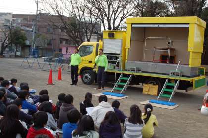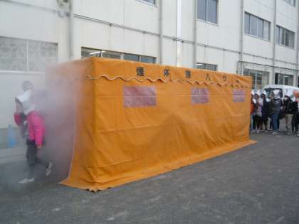 4・5・6年生は、起震車体験と、煙体験がありました。起震車体験では、震度6までの体験ができ、子どもたちは体いっぱいに力を入れて揺れる車に耐えていました。煙体験では、目の前が真っ白の中で右手ではハンカチで口を押さえ左手では壁をつたい出口まで歩きました。本当の煙だったらもっと怖いだろうと想像しながら真剣に体験することができました。
