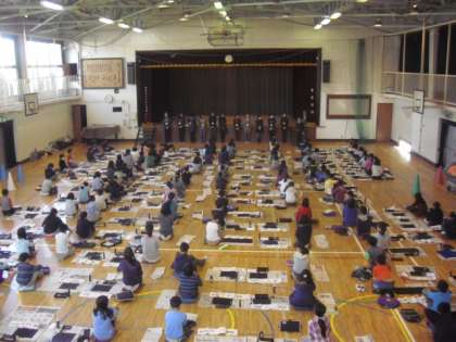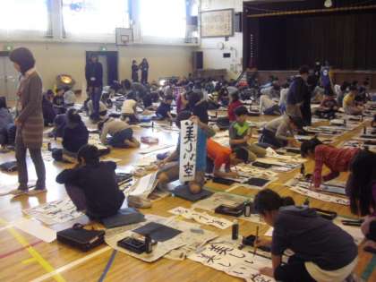 本日、3・4校時に4年生は書き初め大会を行いました。より良い字を書くために、一画ずつ丁寧に、集中して書くことができました。書き上げた中から1枚を選び、各教室の廊下に掲示しました。書き初め展が始まりましたらぜひ、子どもたちの字を観てください。ボランティアの方々、寒い中、半紙の配布から廊下掲示までお手伝いいただきありがとうございました。