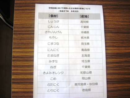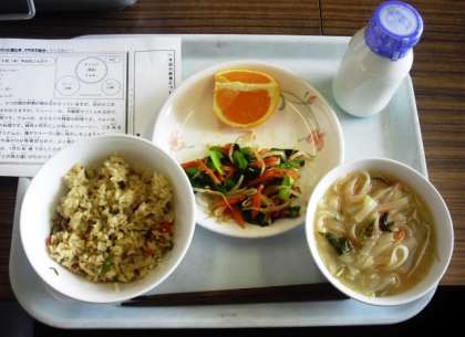 今日の献立は、3つの国の料理が組み合わせてありますが、何がどこの国の料理かわかりますか。ジューシーは、沖縄で作られる料理なので、日本の料理です。ナムルは、お隣の韓国の料理です。フォーは、ベトナムの料理です。豚肉と昆布のだしがきいたジューシー、ごま油をたっぷり使うナムル、鶏がらスープに隠し味のレモンを入れるフォーと、それぞれ味付けが特徴的なので、よく味わって食べてください。特にフォーは、1月の給食で出したものよりも本格的な味に仕上げています。いかがでしょうか。