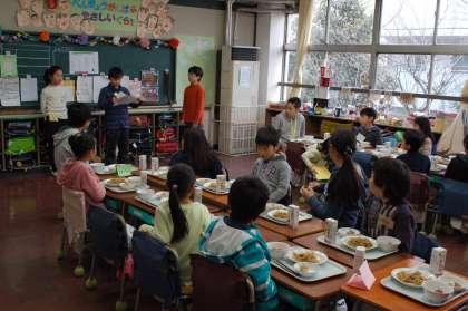 交流藩で6年生と一緒に給食を食べたり、遊んだりする最後の機会です!