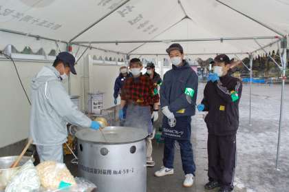 おやじネットの皆さんは避難所で使う大きな鍋やバーナーを使って調理をしてくれました。