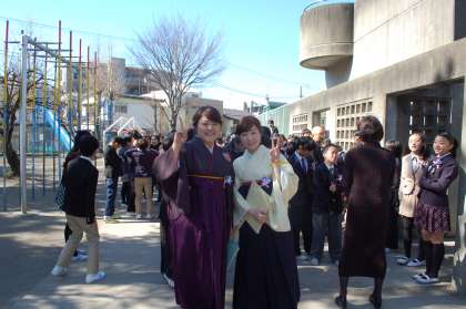 今日は卒業式。6年生が山野小学校を巣立つ日です。雲一つない青空は、最高の卒業式の始まりを告げているようでした。先生たちの表情も明るく素敵です