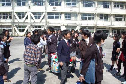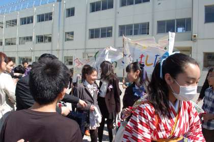卒業式が終わり、送り出しの時間となりました。緊張感から解放され、ほっとしている様子が見られました。